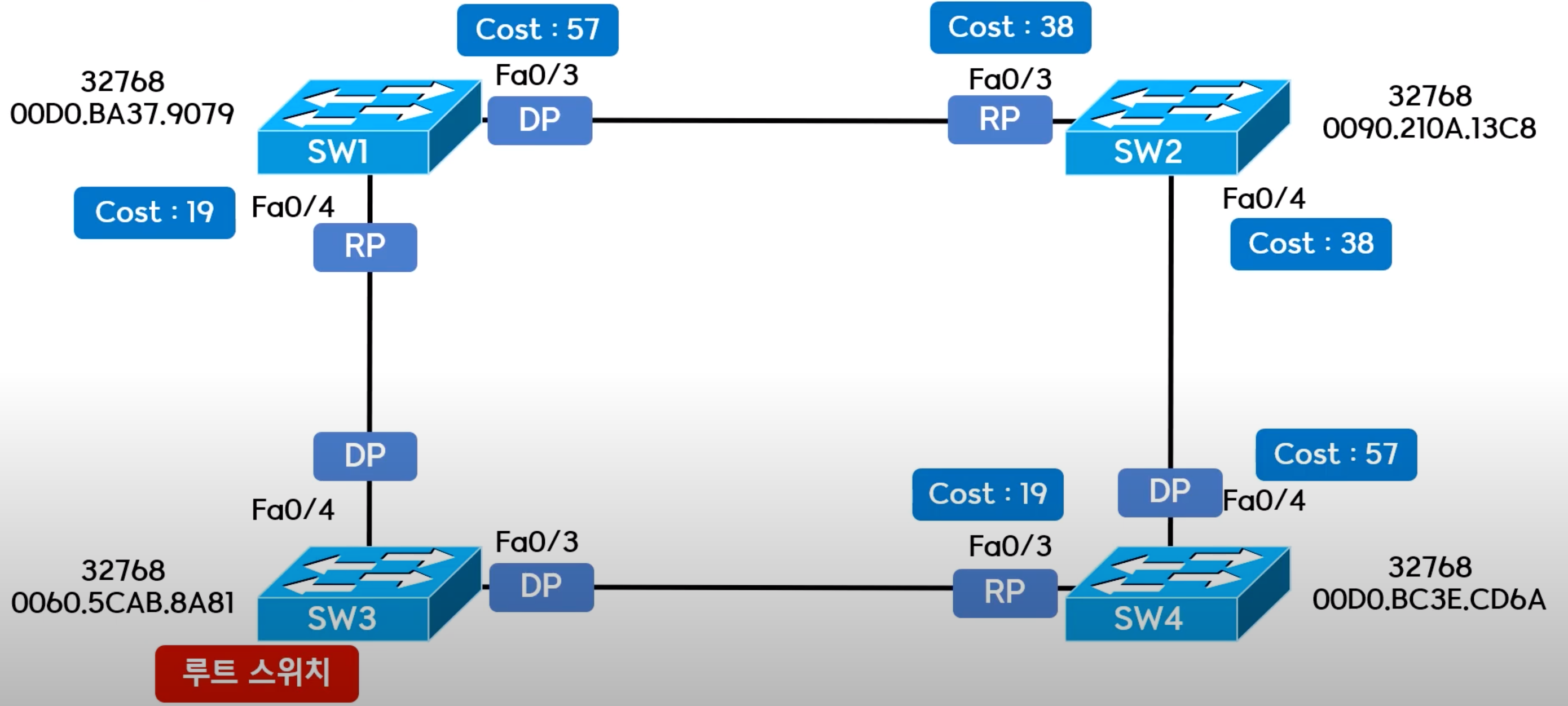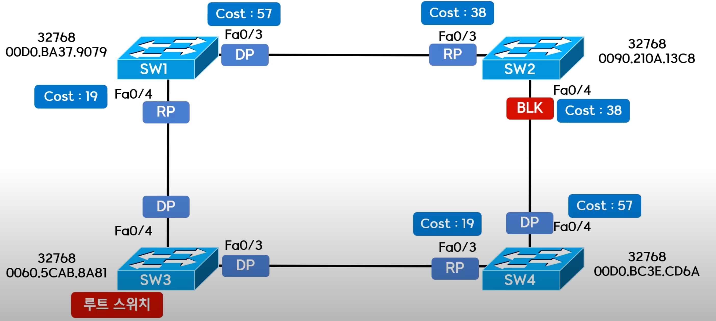 ③ 또한, 링크 장애가 복구되면, 다시 Blocking 상태로 전환된다.