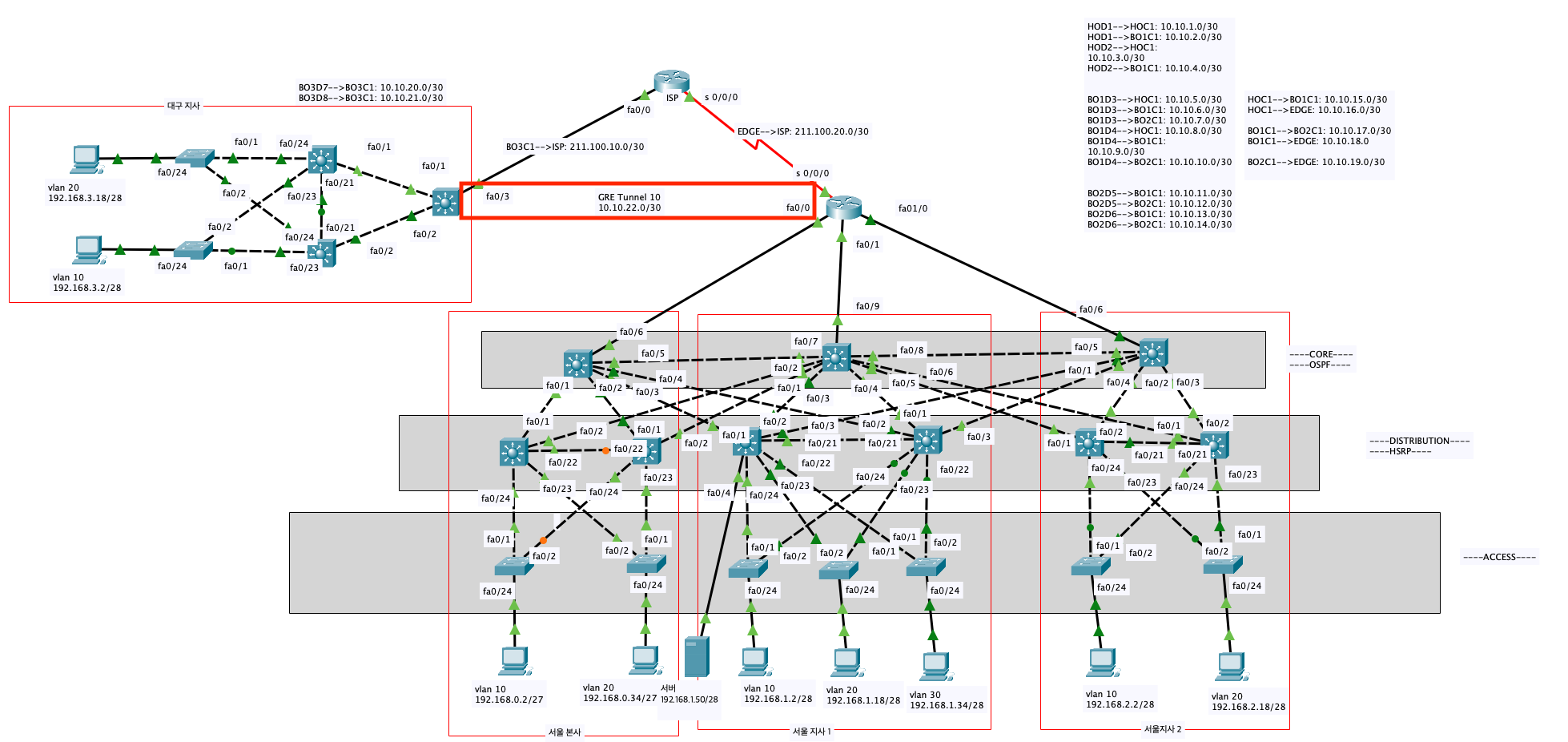이전 시간에 해본 회사 네트워크 망 구성하기를 수정해 보았다