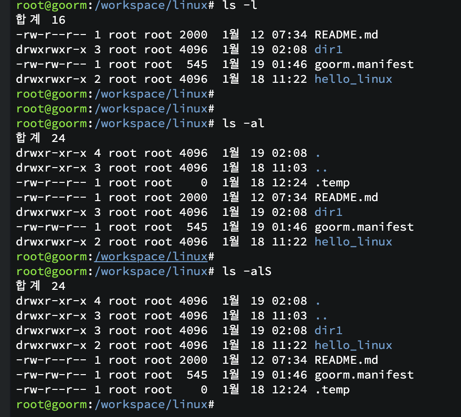 drwxr-xr-x 7 sunhangcho staff 224 1 19 12:34 linux #aaa에서 linux로 바뀜