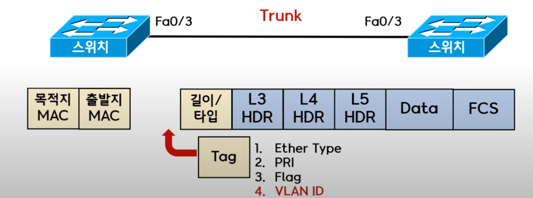 - 트렁크 인터페이스에서 브이랜 트래픽을 식별