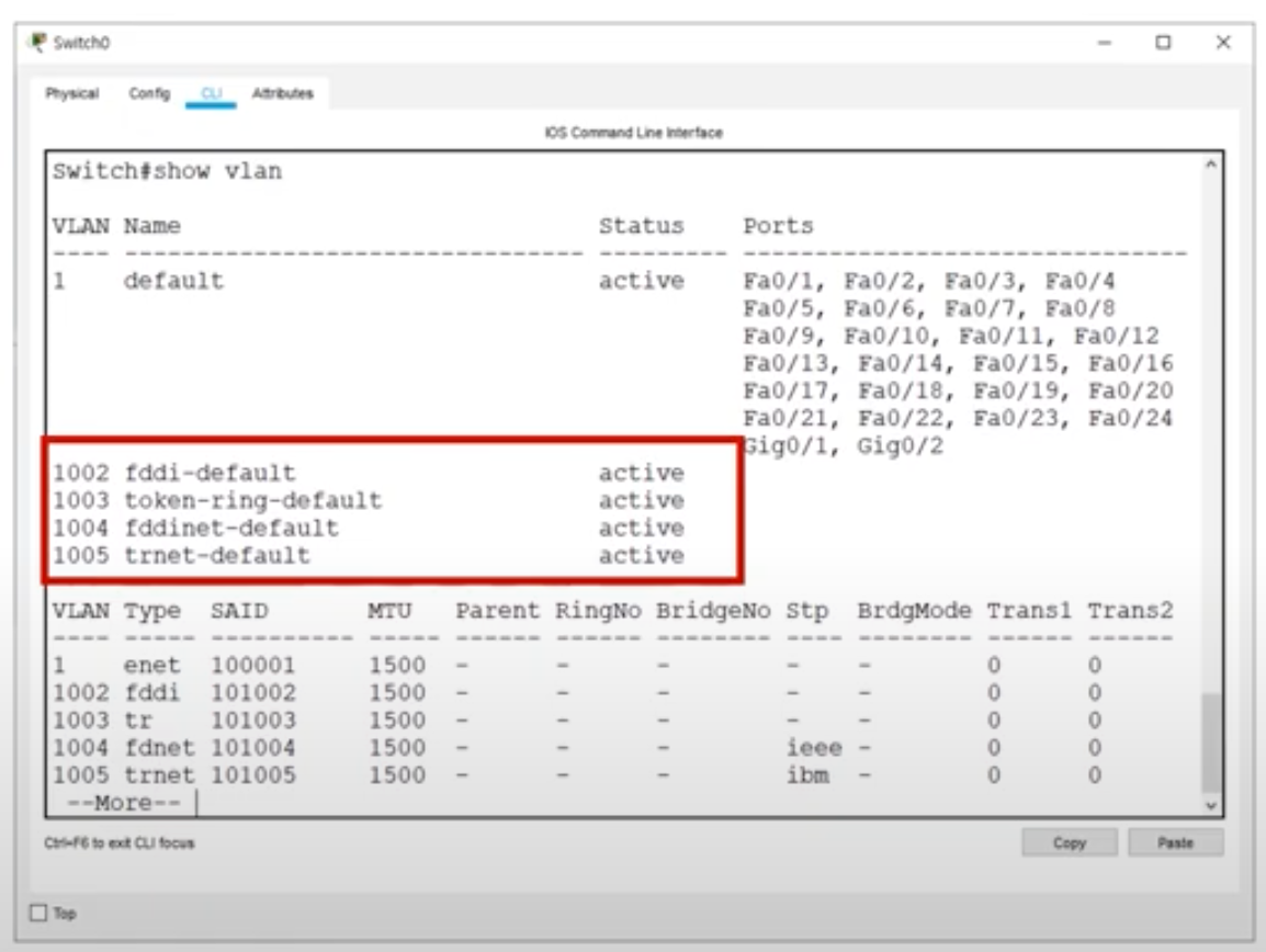 - vlan 1002 ~ 1005 토큰링과 FDDI용